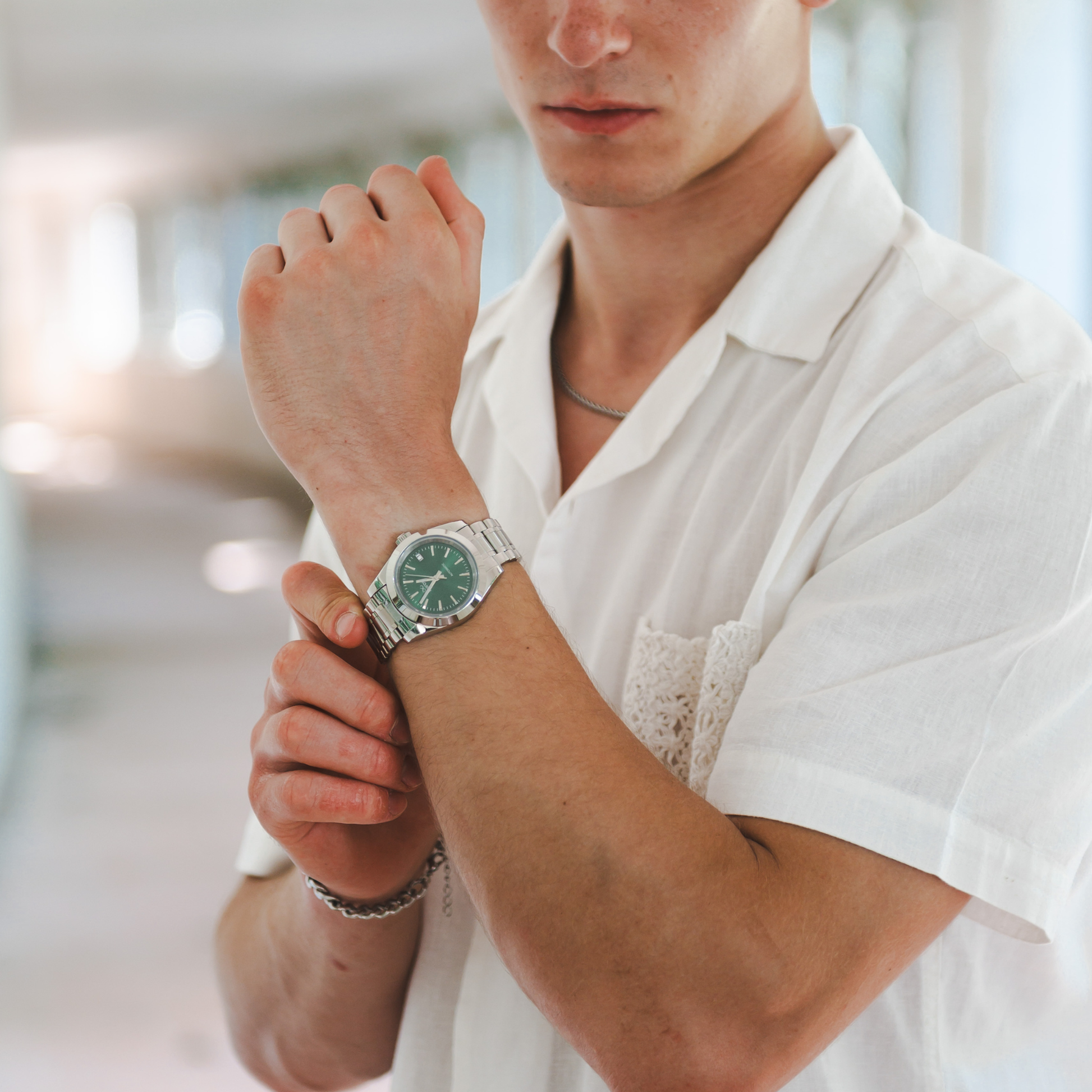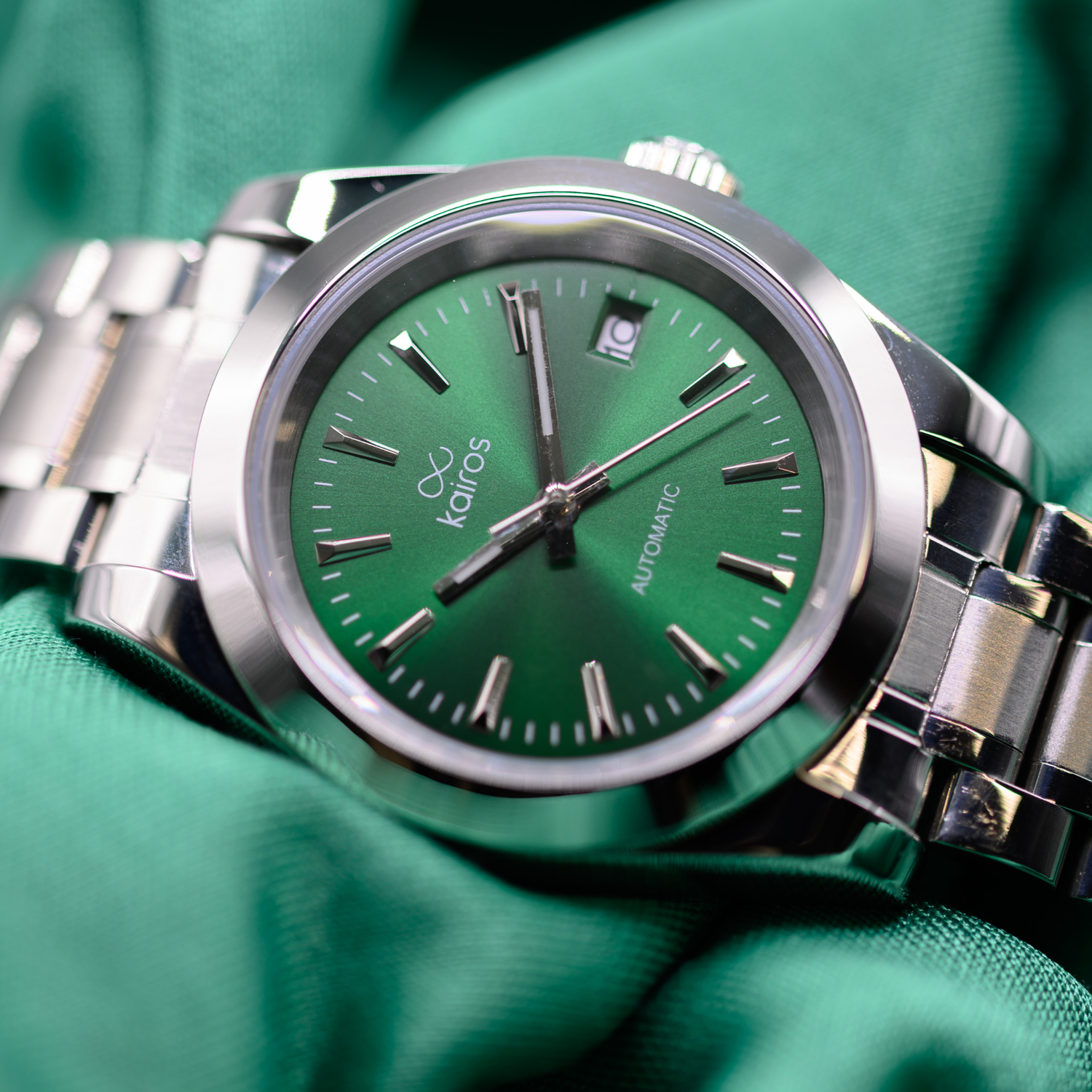 Abbiamo voluto raccontarla così: con un quadrante verde smeraldo, pulito ma mai piatto, capace di riflettere la luce e cambiare insieme a te.