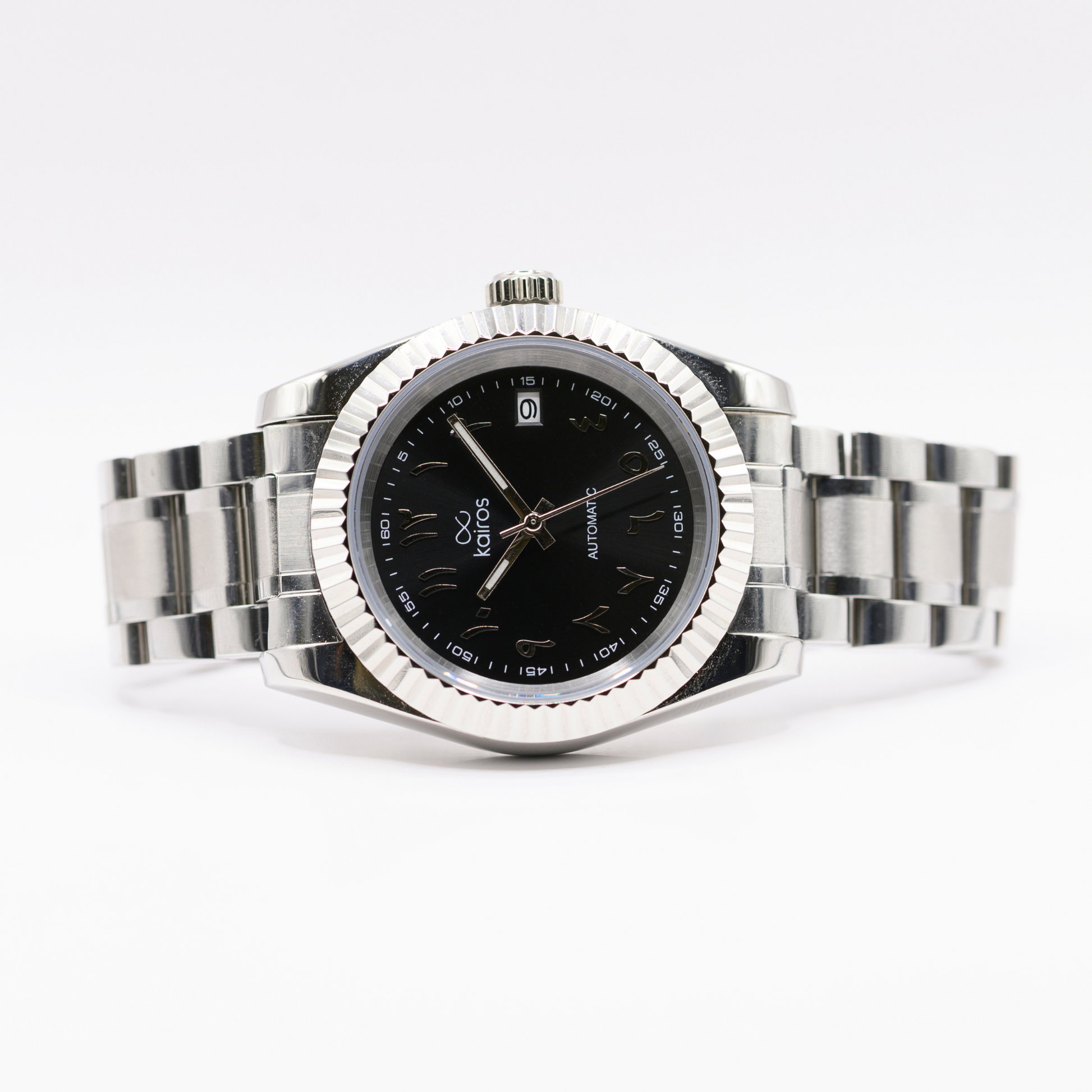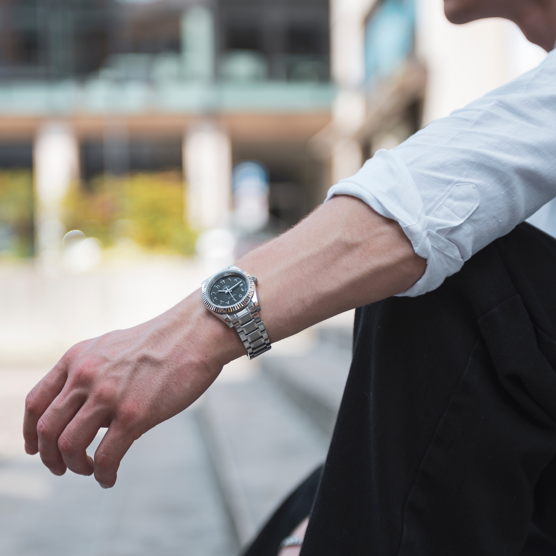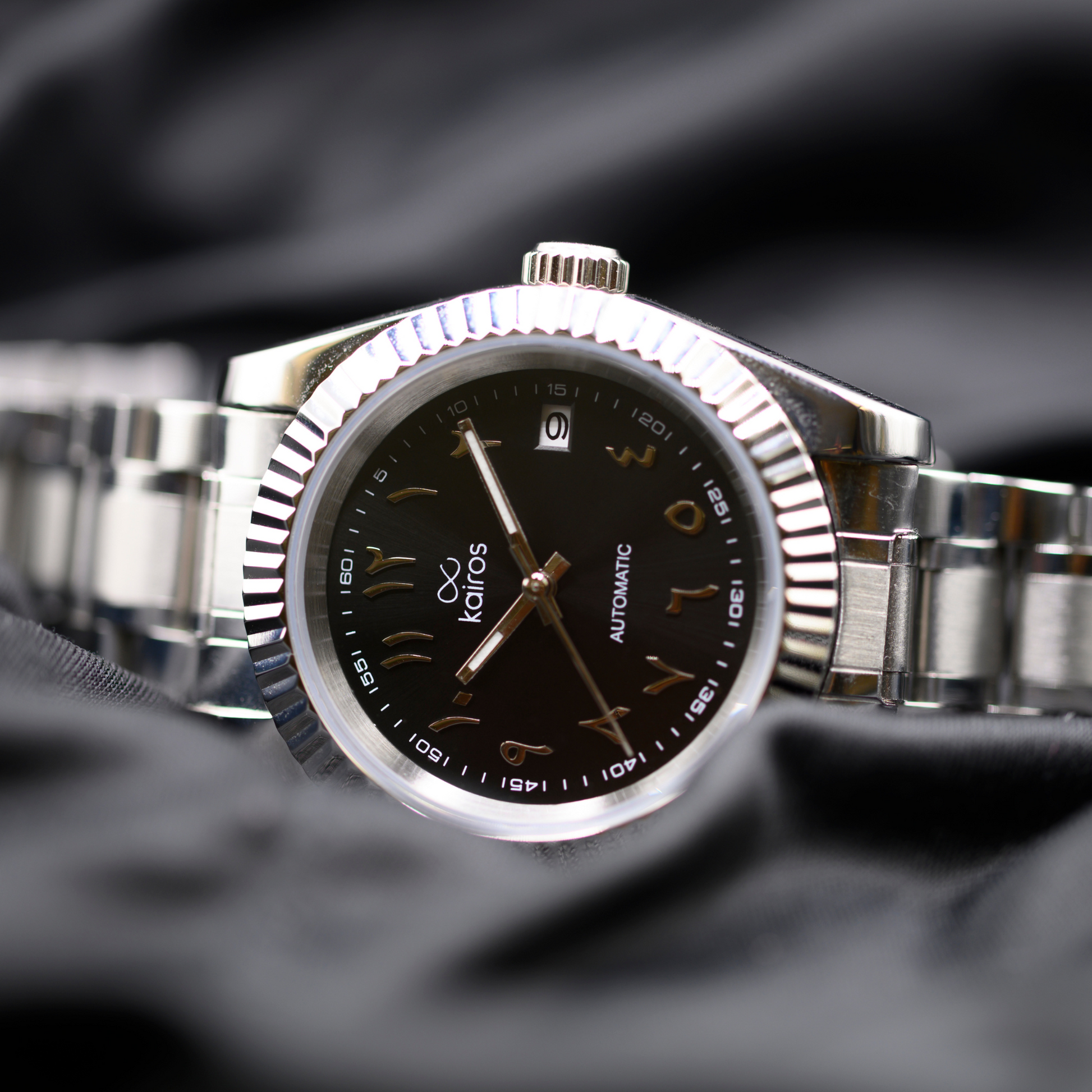 Movimento automatico, quadrante nero opaco, dettagli argento. Ispirato ai toni della notte del deserto e alla piazza di Marrakech. Resistente, affidabile e realizzato a mano.